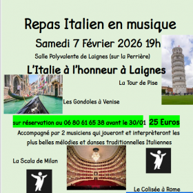 Un dîner aux accents de dolce vita, où les saveurs italiennes s’invitent à table au rythme des chansons et musiques emblématiques de l’Italie. Un moment chaleureux et gourmand, entre plaisirs du palais et ambiance festive, pour voyager le temps d’une soirée. Venez écouter 2 musiciens de talent qui joueront et interprèteront les plus belles mélodies et danses traditionnelles Italiennes.
