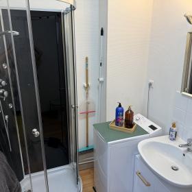 WC avec lave-mains. Buanderie avec lave linge et sèche linge.