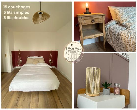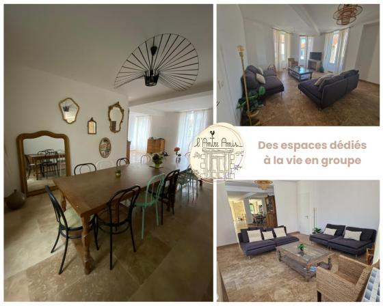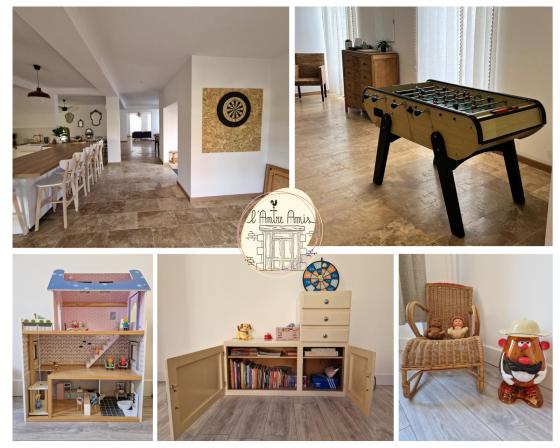 La maison vous offre des espaces communs spacieux qui ont été conçus pour les groupes. Vous pouvez prendre les repas tous ensemble dans la salle à manger et également profiter de la convivialité de l’îlot central. Les petits plus : Une salle de jeux pour les enfants . Un jardin est mis à votre disposition où vous pourrez organiser des barbecues, profiter du terrain de pétanque ou simplement vous détendre. Un baby-foot et un jeu de fléchette fera également le bonheur de tous.