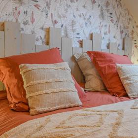 À l'étage : 1 chambre avec lit 160x200, queen size avec sa salle d'eau privative (douche à l'italienne et wc), 1 chambre avec lit 160x200, queen size avec sa salle de bains privative (baignoire et wc). 1 chambre avec 1 lit 160x200, queen size et une chambre avec 2 lits simples (90x200) au sol et 2 lits superposés (90 x 190). Salle d'eau à l'italienne et WC à partager entre ces 2 chambres. Chauffage par aquathermie, bois pour la cheminée et électricité sont inclus, de même que le ménage, le linge de maison, de lit et de toilette.
