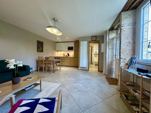 Installé dans une bâtisse du XVe siècle chargée d’histoire, cet ancien prieuré a été soigneusement rénové pour offrir confort et modernité, dans un cadre calme et authentique où le charme de l’ancien se mêle à merveille à une décoration contemporaine.