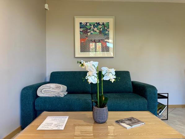 Canapé convertible de bonne qualité offrant 2 couchages supplémentaires (10 euros/nuit) Contacter l'agence. Wifi. Enceinte bluetooth.